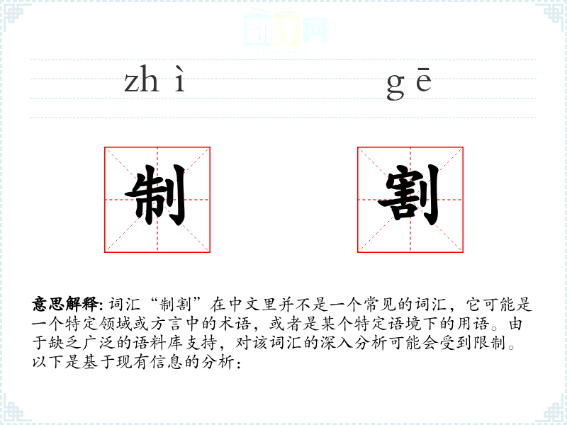 由于“制割”不是一个常见词汇,对其的理解可能需要更多的上下文信息。在语言学习和表达中,了解特定领域或方言中的术语是非常重要的,这有助于更准确地理解和使用语言。