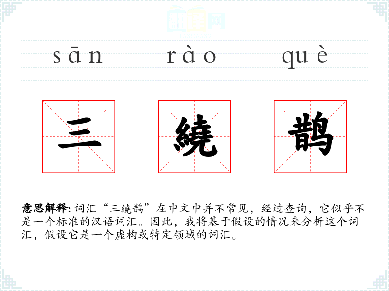 词汇“三繞鹊”在中文中并不常见,经过查询,它似乎不是一个标准的汉语词汇。因此,我将基于假设的情况来分析这个词汇,假设它是一个虚构或特定领域的词汇。