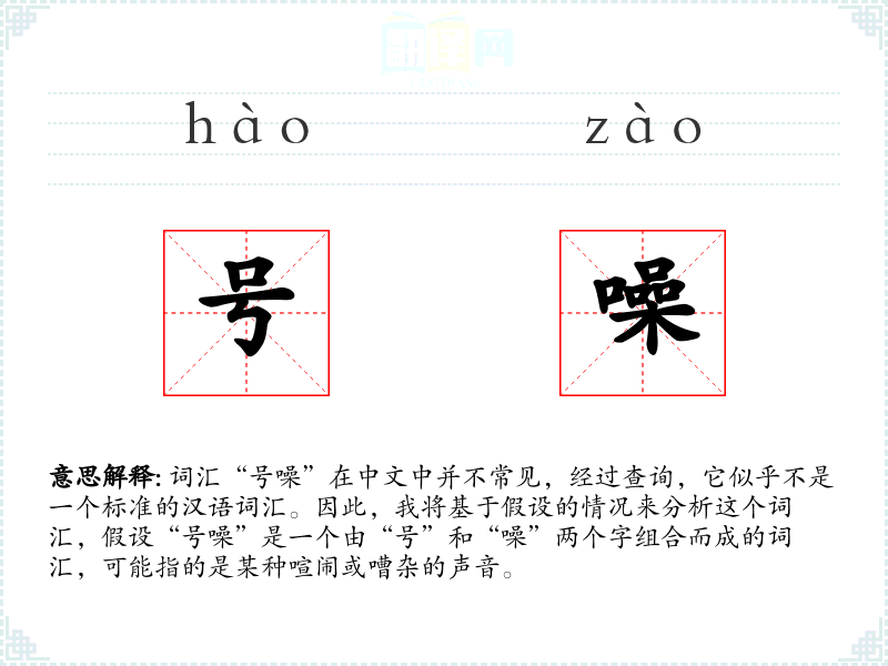 - 字面意思:号噪可能指的是大声的喧哗或嘈杂的声音,类似于“号叫”和“噪音”的结合。