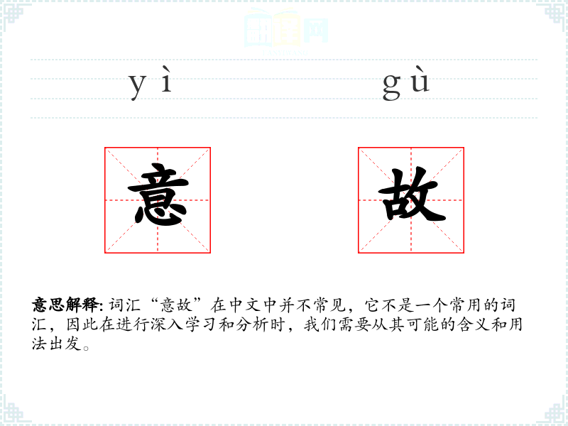 在日常生活中,我们可能更倾向于使用更常见的词汇来表达类似的意思,因此“意故”在实际应用中并不常见。
