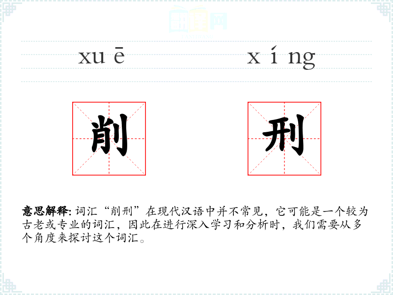 词汇“削刑”在现代汉语中并不常见,它可能是一个较为古老或专业的词汇,因此在进行深入学*和分析时,我们需要从多个角度来探讨这个词汇。