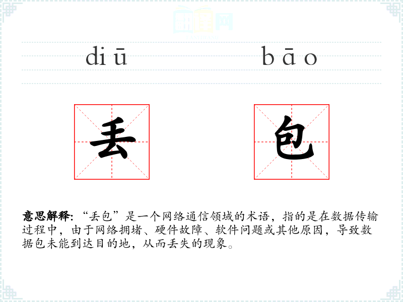- 专业领域:在计算机网络和通信工程中,“丢包”是一个专业术语,用于描述网络性能问题。