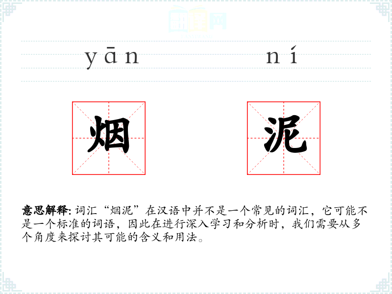 词汇“烟泥”在汉语中并不是一个常见的词汇,它可能不是一个标准的词语,因此在进行深入学习和分析时,我们需要从多个角度来探讨其可能的含义和用法。
