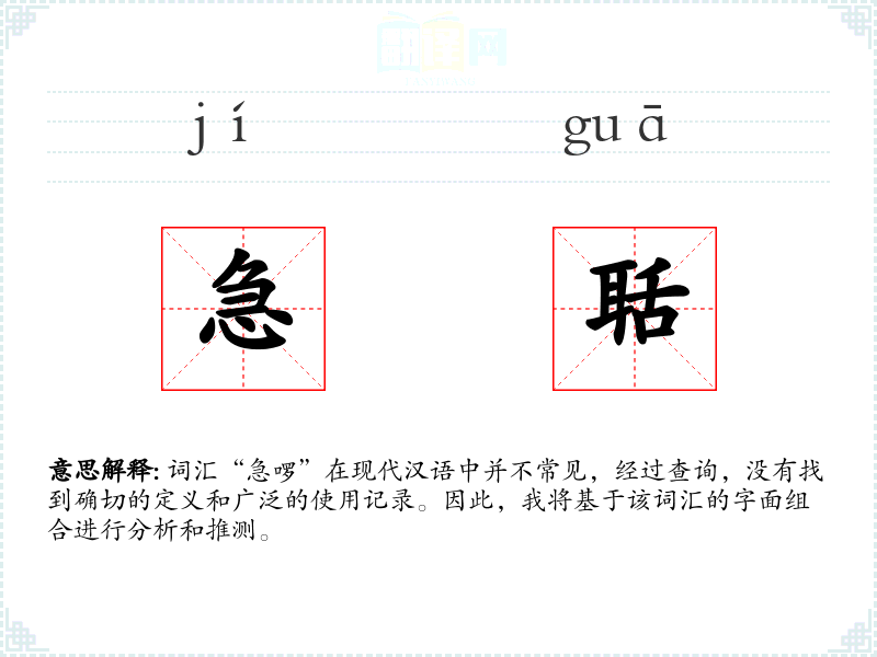由于“急啰”不是一个标准词汇,其词源和演变难以考证。可能是某个地区或社群的方言词汇,随着时间的推移,其使用范围和含义可能有所变化。