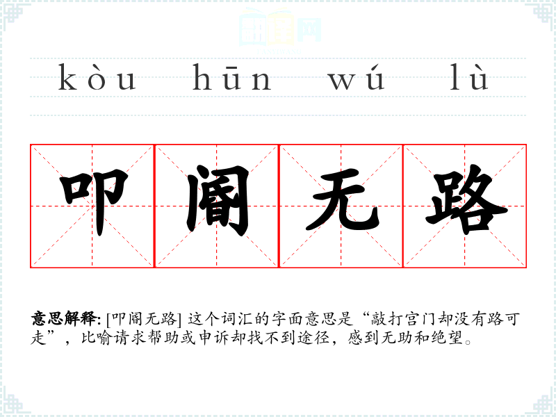 [叩阍无路] 这个词汇的字面意思是“敲打宫门却没有路可走”,比喻请求帮助或申诉却找不到途径,感到无助和绝望。