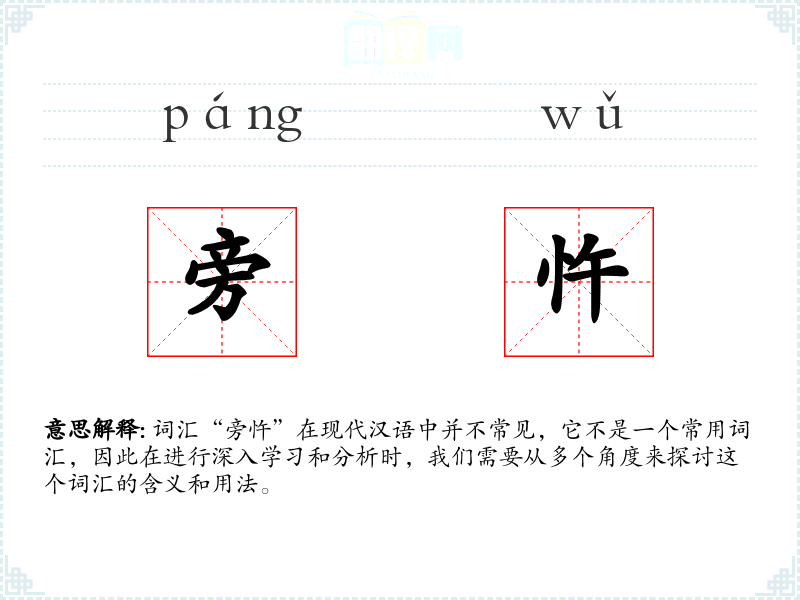 词汇“旁忤”在现代汉语中并不常见,它不是一个常用词汇,因此在进行深入学习和分析时,我们需要从多个角度来探讨这个词汇的含义和用法。