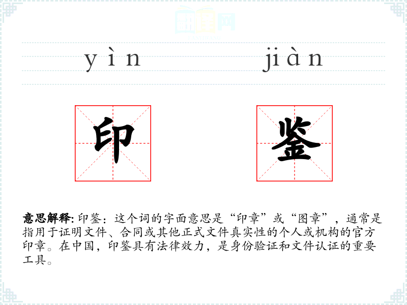 印鉴作为一个词汇,不仅代表了法律和行政的正式性,也承载了文化和历史的深厚意义。在语言学*和表达中,理解和正确使用印鉴这一词汇,对于掌握相关领域的专业知识和文化背景至关重要。