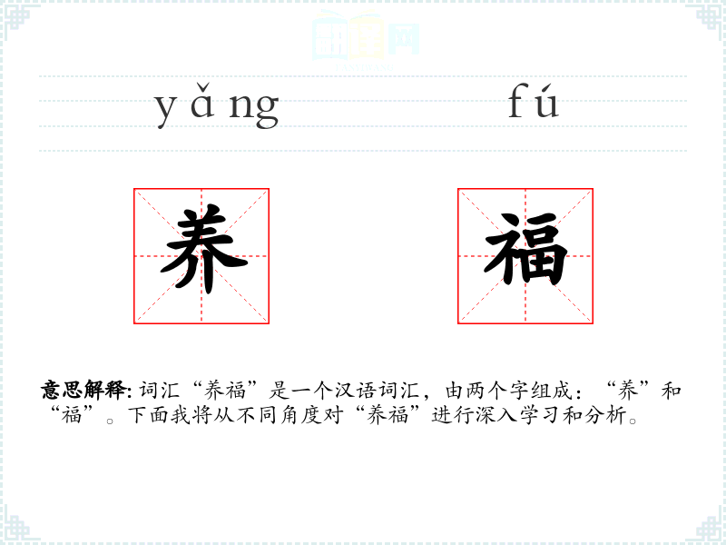 "养福"的意思解释、养福是什么意思由翻译网汉语词典查词提供。