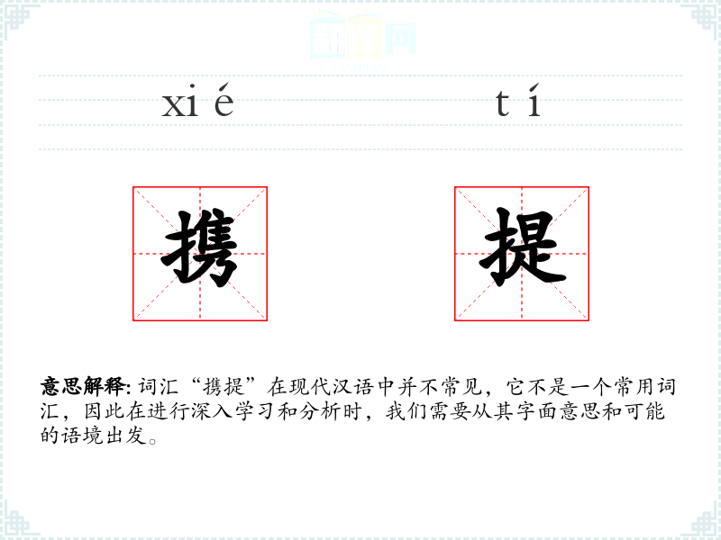 词汇“携提”在现代汉语中并不常见,它不是一个常用词汇,因此在进行深入学习和分析时,我们需要从其字面意思和可能的语境出发。