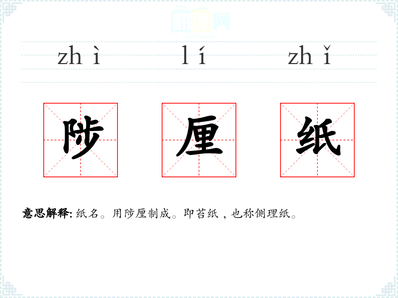 纸名。用陟厘制成。即苔纸﹐也称侧理纸。