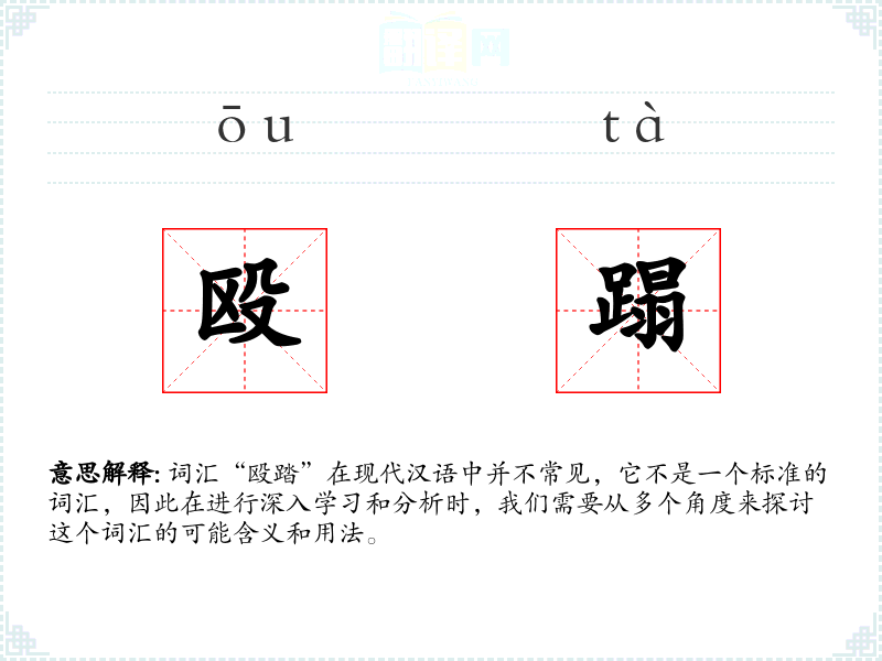 词汇“殴踏”在现代汉语中并不常见,它不是一个标准的词汇,因此在进行深入学*和分析时,我们需要从多个角度来探讨这个词汇的可能含义和用法。