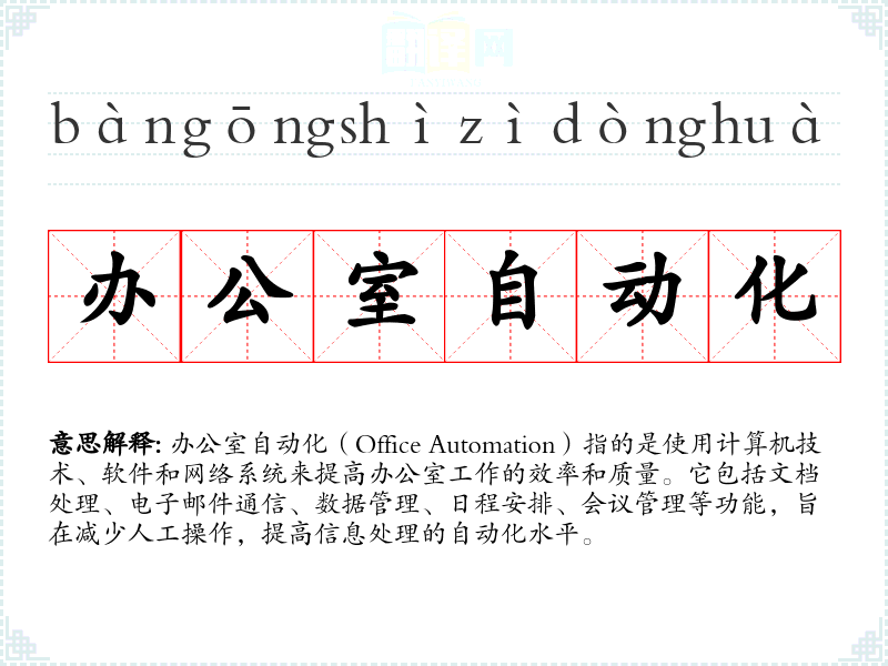 "办公室自动化"的意思解释、办公室自动化是什么意思由翻译网汉语词典查词提供。