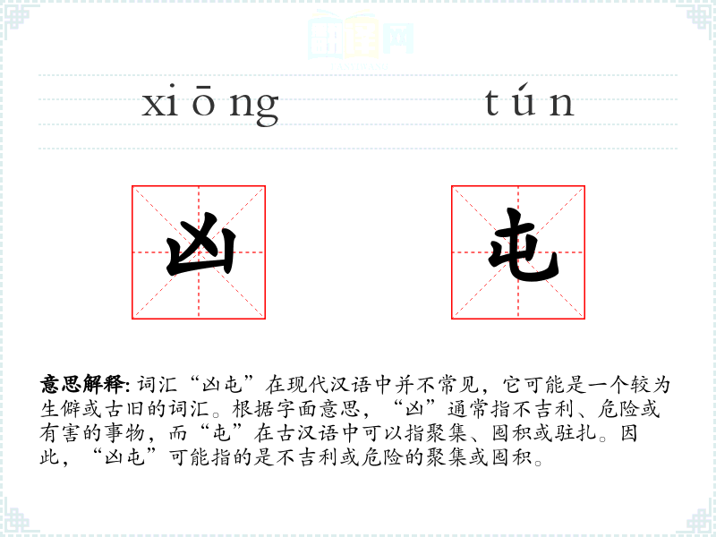 - 理解:“凶屯”这个词汇虽然不常见,但它反映了人们对不吉利和危险事物的敏感和警惕。