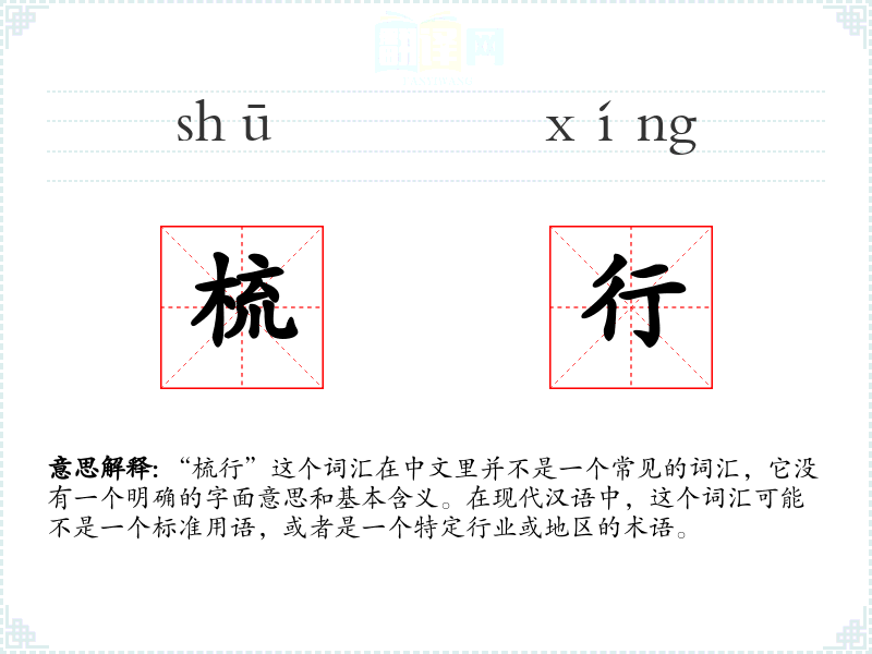 “梳行”这个词汇在中文里并不是一个常见的词汇,它没有一个明确的字面意思和基本含义。在现代汉语中,这个词汇可能不是一个标准用语,或者是一个特定行业或地区的术语。