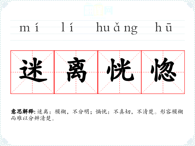 迷离:模糊,不分明;惝恍:不真切,不清楚。形容模糊而难以分辨清楚。