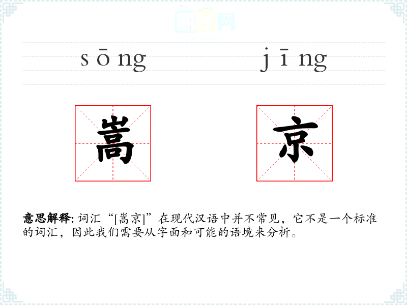 - 反义词:由于“嵩京”不是一个常用词汇,反义词不适用。