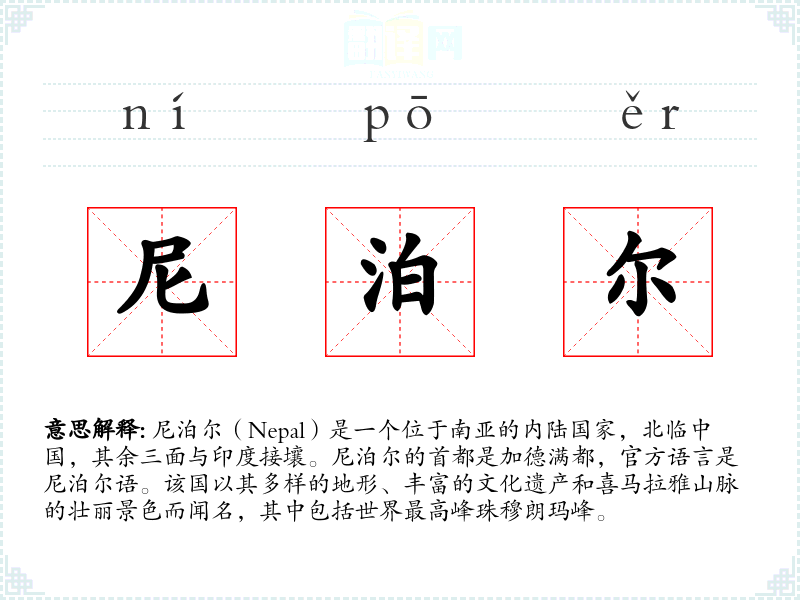 - 反义词:由于尼泊尔是一个特定的国家名称,没有直接的反义词。