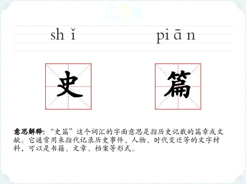 “史篇”一词源于古代对历史文献的称呼,随着时间的推移,其含义逐渐固定为对历史记载的泛称。在古代,史官负责记录国家大事,这些记录后来被称为“史篇”。