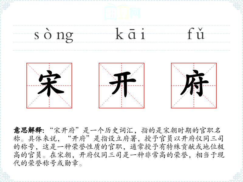 - 在宋代的官制中,“宋开府”是一种极高的荣誉称号。