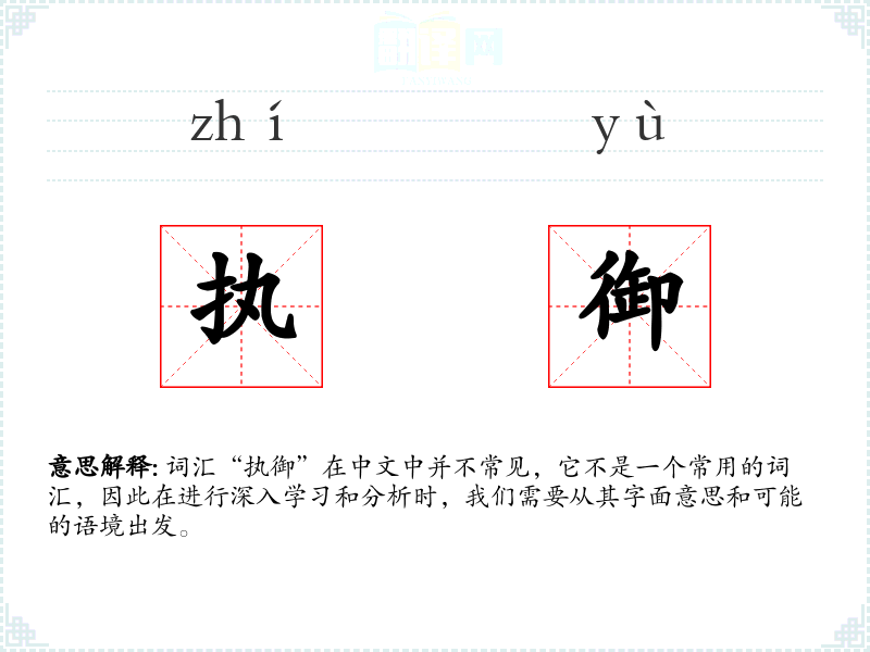 词汇“执御”在中文中并不常见,它不是一个常用的词汇,因此在进行深入学*和分析时,我们需要从其字面意思和可能的语境出发。
