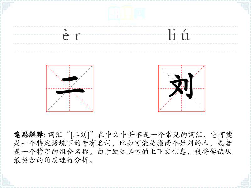 “二刘”作为一个词汇,其意义和应用可能非常特定,需要具体的上下文来理解。在语言学*和表达中,了解词汇的具体用法和背景是非常重要的。