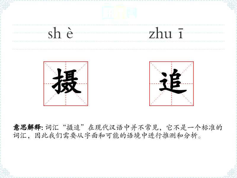 词汇“摄追”在现代汉语中并不常见,它不是一个标准的词汇,因此我们需要从字面和可能的语境中进行推测和分析。