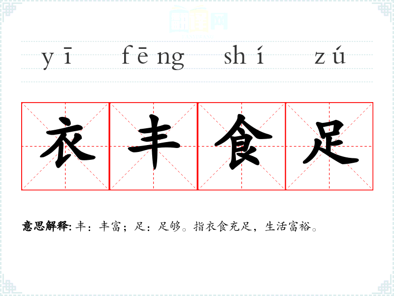 丰:丰富;足:足够。指衣食充足,生活富裕。