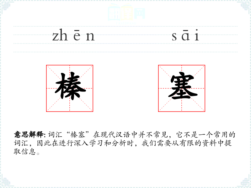 词汇“榛塞”在现代汉语中并不常见,它不是一个常用的词汇,因此在进行深入学习和分析时,我们需要从有限的资料中提取信息。