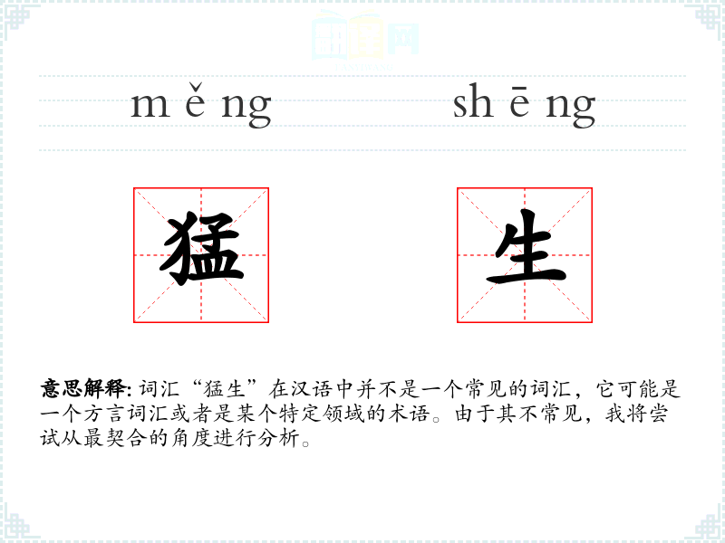 词汇“猛生”在汉语中并不是一个常见的词汇,它可能是一个方言词汇或者是某个特定领域的术语。由于其不常见,我将尝试从最契合的角度进行分析。