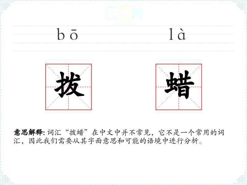 词汇“拨蜡”在中文中并不常见,它不是一个常用的词汇,因此我们需要从其字面意思和可能的语境中进行分析。