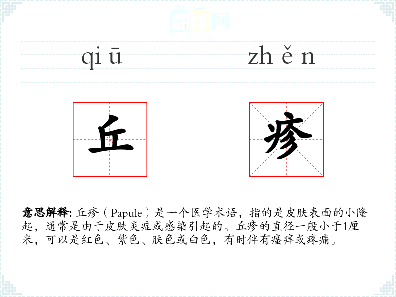 "丘疹"的意思解释、丘疹是什么意思由翻译网汉语词典查词提供。