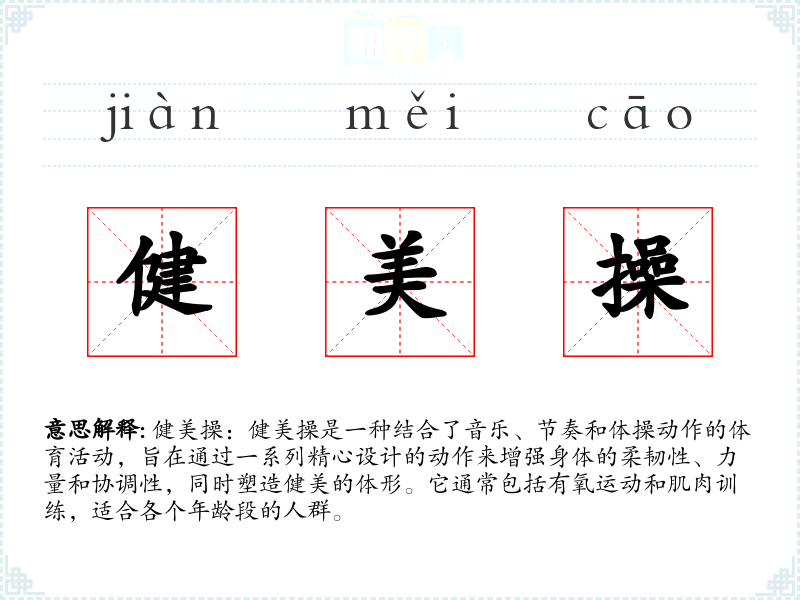 "健美操"的意思解释、健美操是什么意思由翻译网汉语词典查词提供。