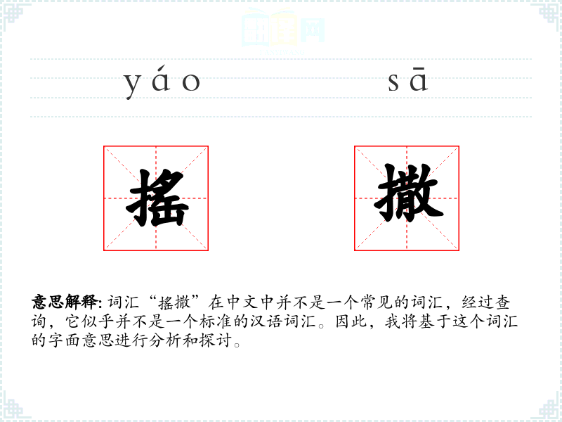 词汇“搖撒”在中文中并不是一个常见的词汇,经过查询,它似乎并不是一个标准的汉语词汇。因此,我将基于这个词汇的字面意思进行分析和探讨。