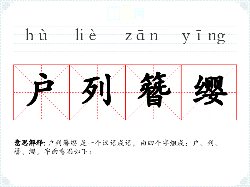 户列簪缨 是一个汉语成语,由四个字组成:户、列、簪、缨。字面意思如下: