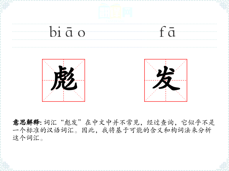 词汇“彪发”在中文中并不常见,经过查询,它似乎不是一个标准的汉语词汇。因此,我将基于可能的含义和构词法来分析这个词汇。