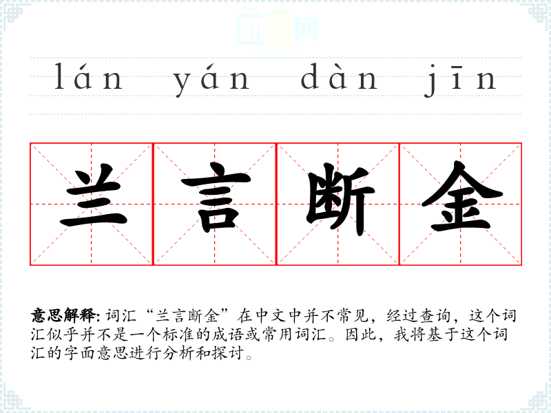 词汇“兰言断金”在中文中并不常见,经过查询,这个词汇似乎并不是一个标准的成语或常用词汇。因此,我将基于这个词汇的字面意思进行分析和探讨。