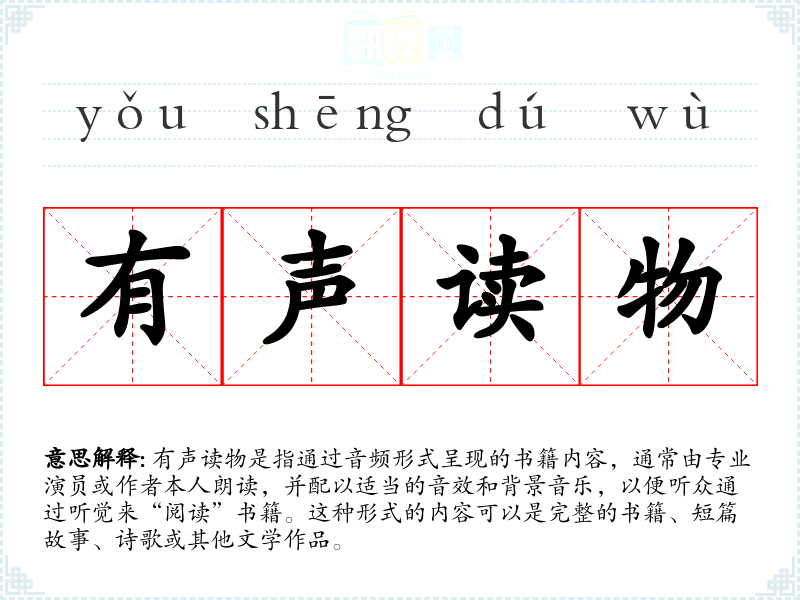 "有声读物"的意思解释、有声读物是什么意思由翻译网汉语词典查词提供。