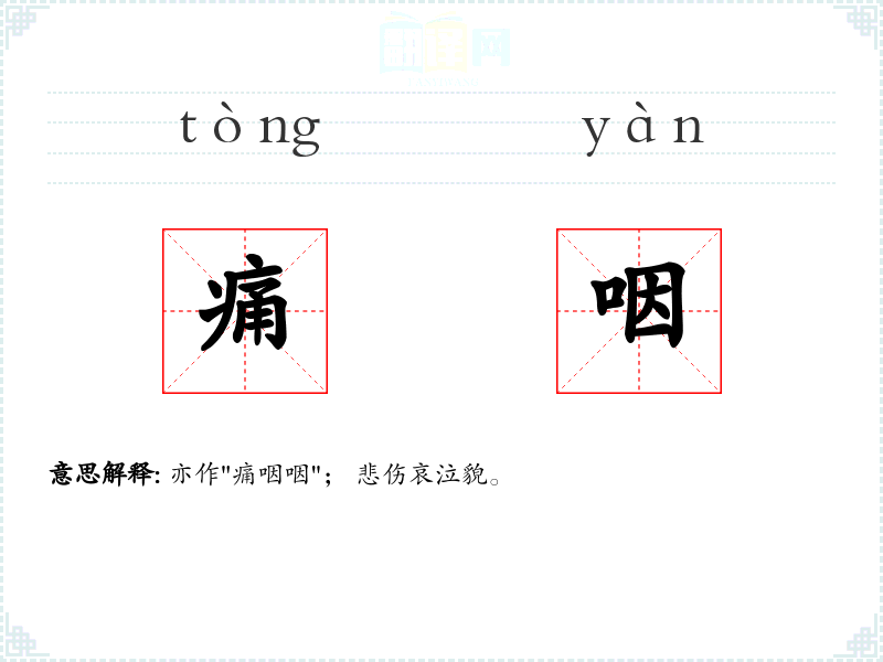 亦作"痛咽咽"; 悲伤哀泣貌。