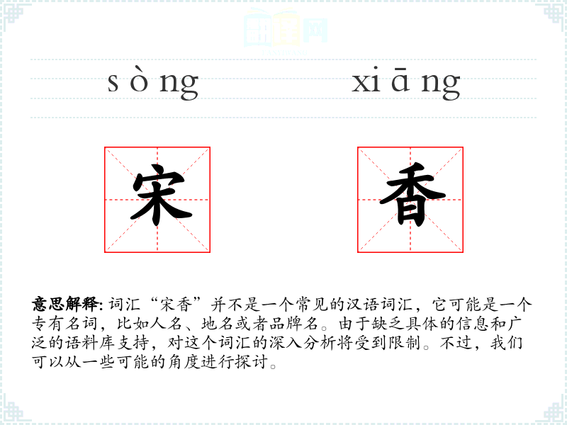 - 同义词:“宋”可以与“宋朝”相关,“香”可以与“芬芳”、“馥郁”等词相近。