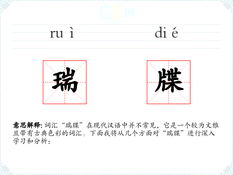 词汇“瑞牒”在现代汉语中并不常见,它是一个较为文雅且带有古典色彩的词汇。下面我将从几个方面对“瑞牒”进行深入学*和分析: