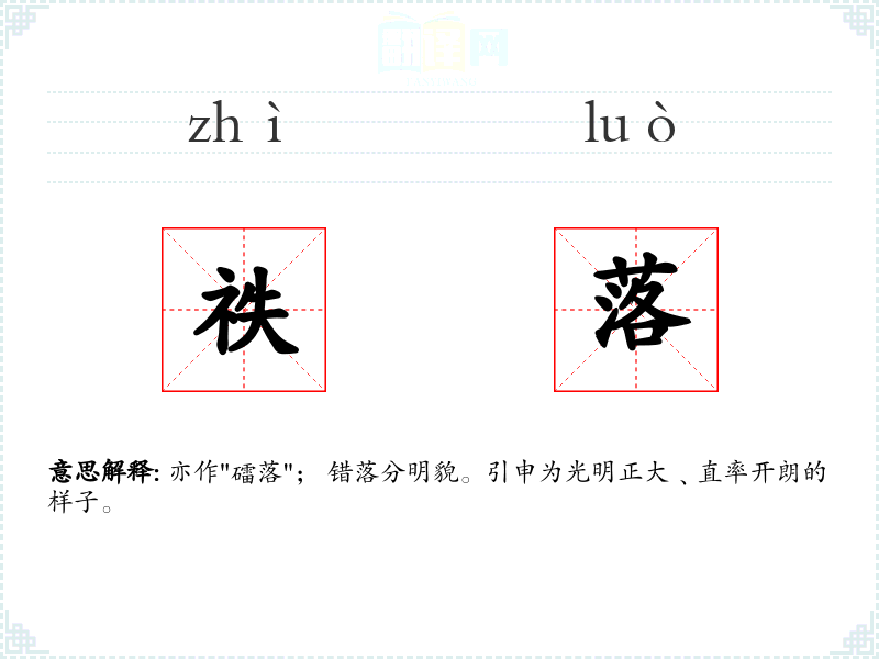 亦作"礌落"; 错落分明貌。引申为