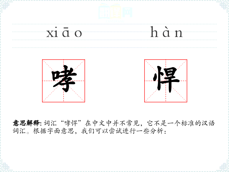 词汇“哮悍”在中文中并不常见,它不是一个标准的汉语词汇。根据字面意思,我们可以尝试进行一些分析: