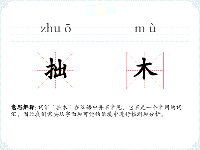 词汇“拙木”在汉语中并不常见,它不是一个常用的词汇,因此我们需要从字面和可能的语境中进行推测和分析。
