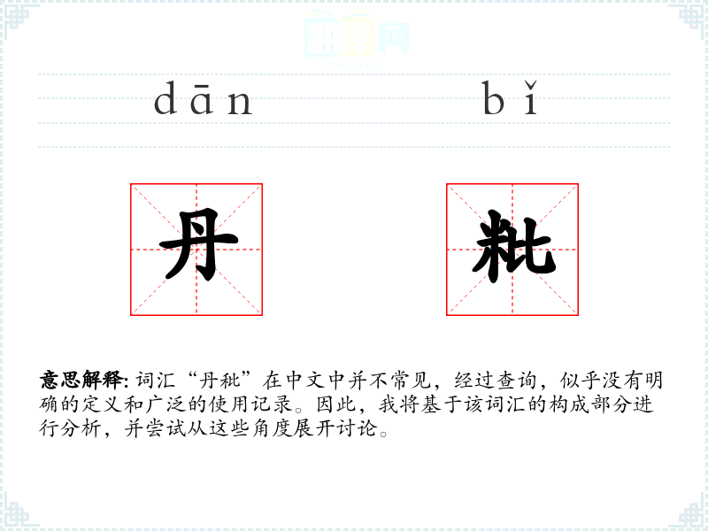 词汇“丹秕”在中文中并不常见,经过查询,似乎没有明确的定义和广泛的使用记录。因此,我将基于该词汇的构成部分进行分析,并尝试从这些角度展开讨论。