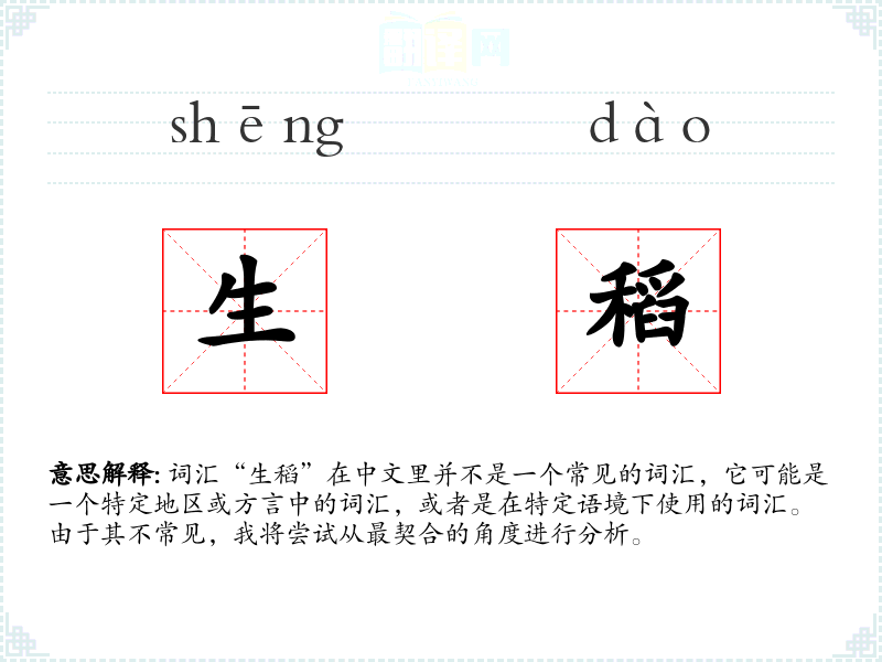 词汇“生稻”在中文里并不是一个常见的词汇,它可能是一个特定地区或方言中的词汇,或者是在特定语境下使用的词汇。由于其不常见,我将尝试从最契合的角度进行分析。