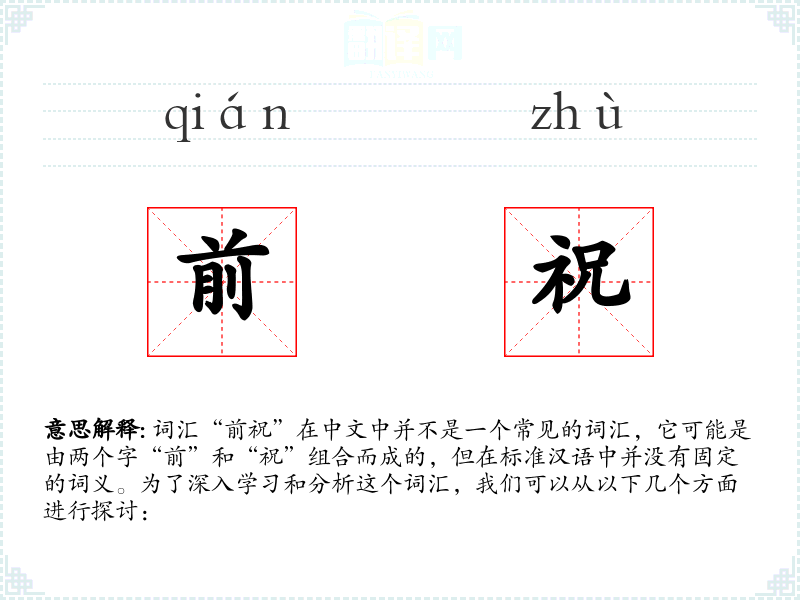 由于“前祝”不是一个标准词汇,我们可以将其拆分为两个字来理解: