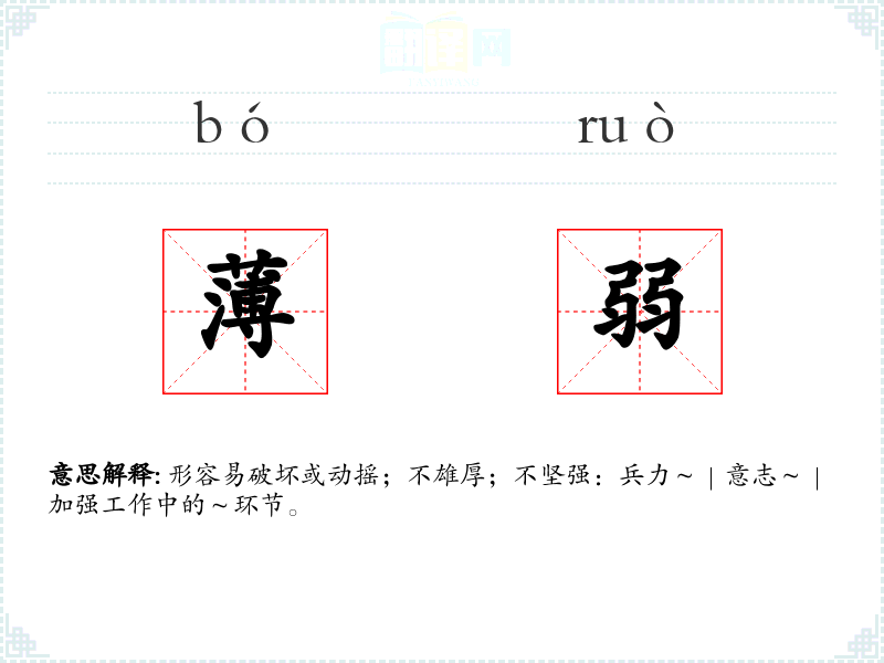 薄弱的分字解释