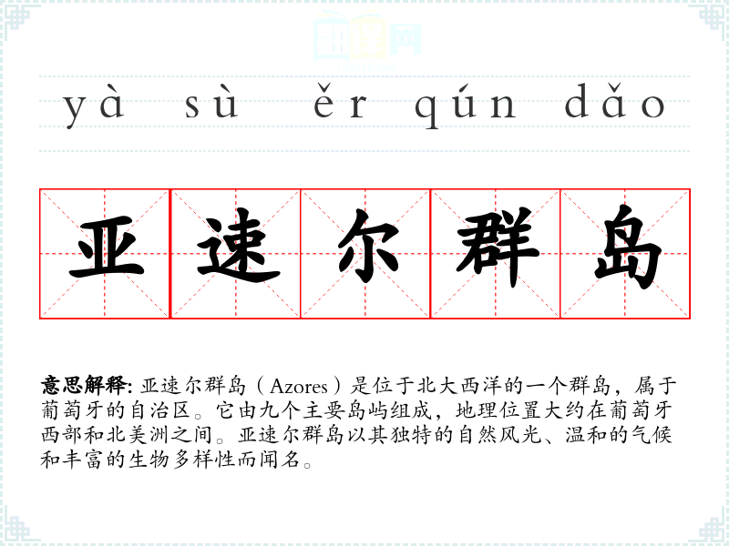 "亚速尔群岛"的意思解释、亚速尔群岛是什么意思由翻译网汉语词典查词提供。
