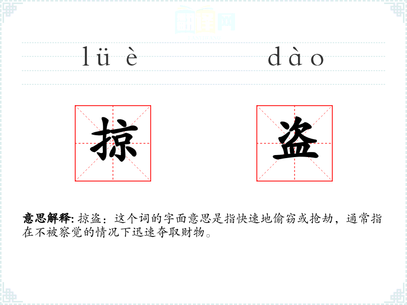 掠盗:这个词的字面意思是指快速地偷窃或抢劫,通常指在不被察觉的情况下迅速夺取财物。