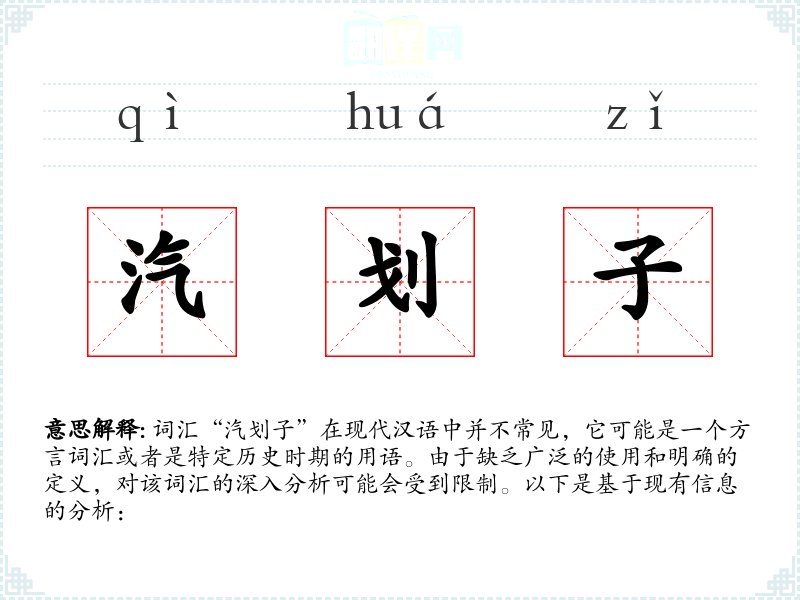 词汇“汽划子”在现代汉语中并不常见,它可能是一个方言词汇或者是特定历史时期的用语。由于缺乏广泛的使用和明确的定义,对该词汇的深入分析可能会受到限制。以下是基于现有信息的分析: